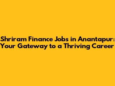 Exploring Job Opportunities at Shriram Finance in Anantapur