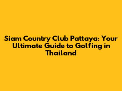 Hey golf enthusiasts! If you're dreaming of lush green fairways, breathtaking views, and a golfing experience that's second to none, then Siam Country Club Pattaya, Thailand needs to be on your radar. Trust me, guys, this place is a slice of paradise for any golfer, whether you're a seasoned pro or just starting out. I'm going to take you on a journey through everything Siam Country Club has to offer, from its world-class courses to its luxurious amenities. Let's dive in!