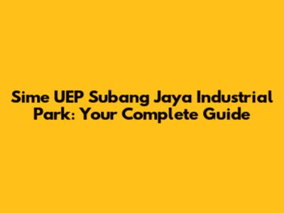 Sime UEP Subang Jaya Industrial Park: Your Complete Guide