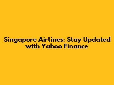 Singapore Airlines Stock: Latest News & Updates On Yahoo Finance