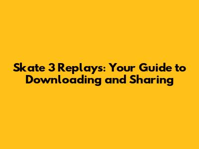 Skate 3 Replays: Your Guide To Downloading And Sharing