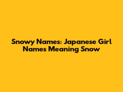 Finding the perfect Japanese girl name meaning snow can be a magical experience. By exploring the meanings and nuances of these beautiful names, you can find a name that reflects the unique beauty and grace you envision for your daughter. Good luck, guys, and happy naming!