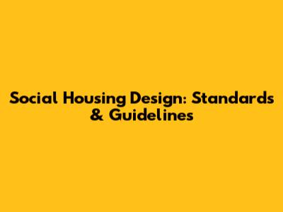 Social Housing Design: Standards & Guidelines