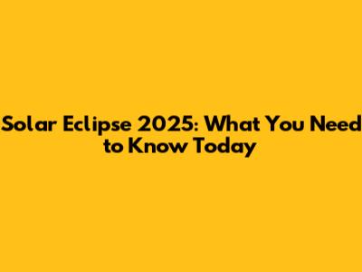 Solar Eclipse 2025: What You Need To Know Today