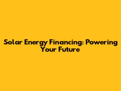 Solar Energy Financing: Powering Your Future