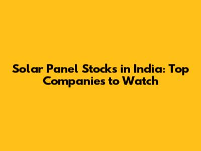 Solar Panel Stocks In India: Top Companies To Watch