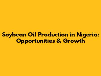Soybean Oil Production In Nigeria: Opportunities & Growth