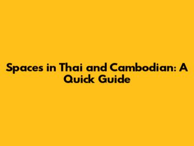 Spaces In Thai And Cambodian: A Quick Guide