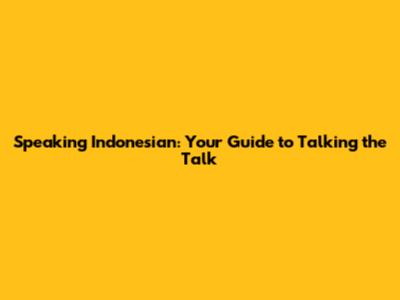 Speaking Indonesian: Your Guide To Talking The Talk