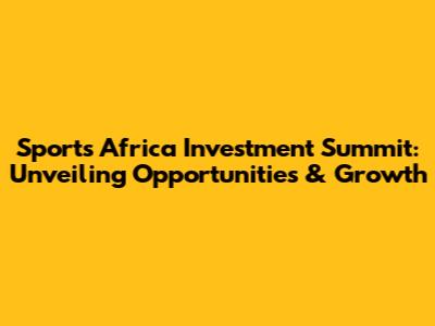Sports Africa Investment Summit: Opportunities & Growth