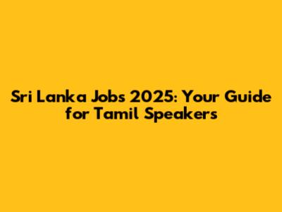 Sri Lanka Jobs 2025: Tamil Speakers Wanted