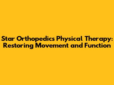Star Orthopedics Physical Therapy: Your Path To Recovery