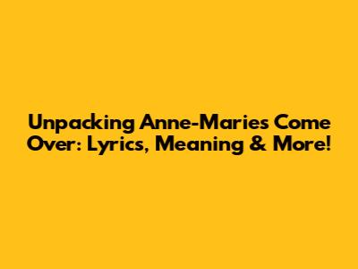 Unpacking Anne-Marie's 'Come Over': Lyrics, Meaning & More!