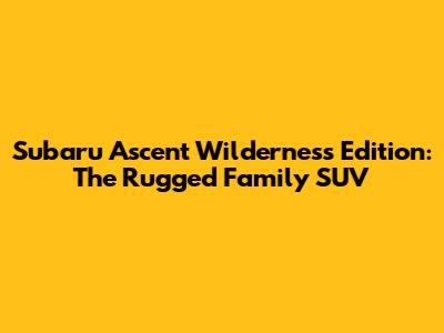Subaru Ascent Wilderness: Rugged Family SUV