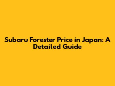 Subaru Forester Price In Japan: A Detailed Guide