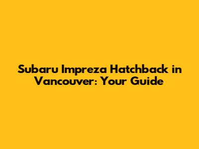 Subaru Impreza Hatchback In Vancouver: Your Guide