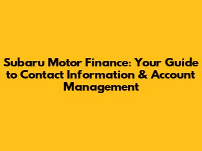 Subaru Motor Finance: Contact Info & Account Management