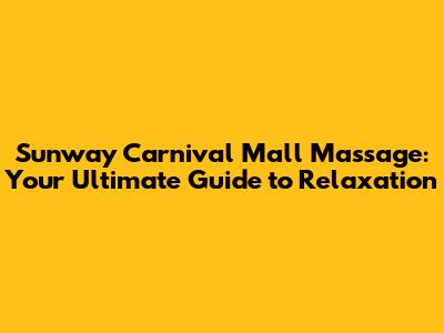 Sunway Carnival Mall Massage: Your Guide To Relaxation