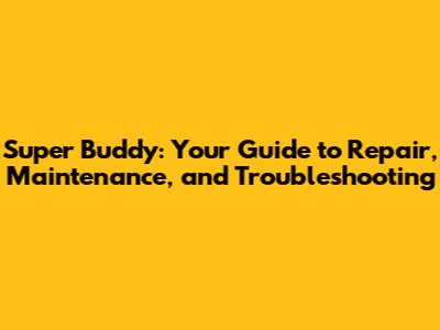 Super Buddy: Repair, Maintenance, And Troubleshooting