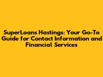 • Q: How do I find the SuperLoans Hastings phone number? A: You can find the phone number on their official website, by searching online, or by checking local business directories.