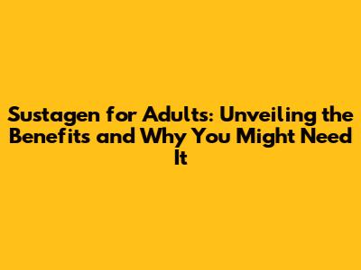 Who Can Benefit Most from Taking Sustagen?