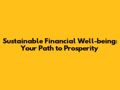 Sustainable Financial Well-being: Your Path To Prosperity