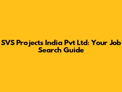 SVS Projects India Pvt Ltd: Your Job Search Guide