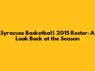 Hey basketball fanatics! Let's rewind the clock and dive into the Syracuse basketball roster of 2015. It was a season filled with its share of ups and downs, unforgettable moments, and the kind of Orange basketball that gets fans hyped. We're going to take a closer look at the key players who donned the Syracuse uniform, their contributions, and what made the 2015 season a memorable chapter in the history of the Orange. So, grab your favorite Syracuse gear, settle in, and let's journey back to the Carrier Dome to relive the excitement.