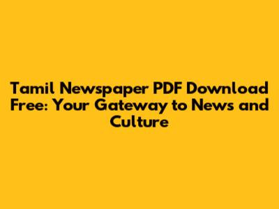 Tamil Newspaper PDF: Free Downloads & Reading Online