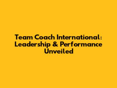 Team Coach International: Leadership & Performance Unveiled
