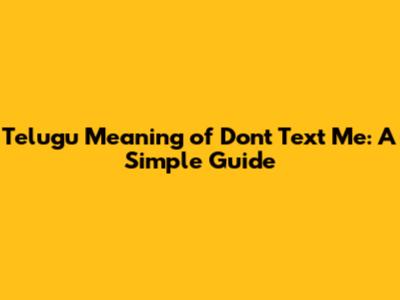 Telugu Meaning Of 'Don't Text Me': A Simple Guide