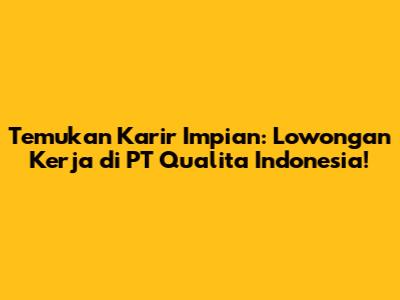 Temukan Karir Impian: Lowongan Kerja Di PT Qualita Indonesia!