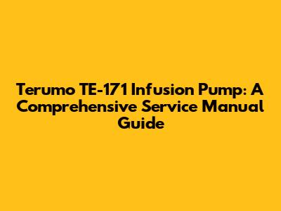 Hey guys! Ever found yourself scratching your head over a Terumo TE-171 infusion pump? Maybe you're a biomed tech, a nurse, or just a curious individual. Well, you're in the right place! We're diving deep into the Terumo TE-171 service manual PDF, breaking down everything from troubleshooting tips to in-depth repair guidance. This isn't just a manual; it's your go-to resource for keeping these vital medical devices running smoothly. Let's get started, shall we?