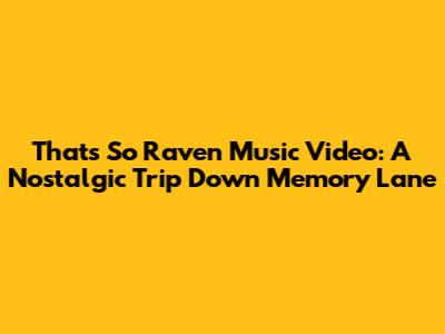 That's So Raven Music Video: A Blast From The Past!
