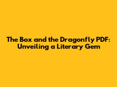 The Box And The Dragonfly PDF: A Comprehensive Guide