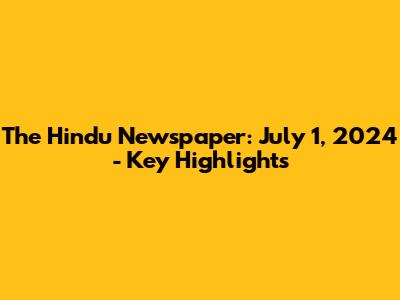 The Hindu Newspaper: July 1, 2024 - Key Highlights