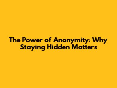 The Power Of Anonymity: Why Staying Hidden Matters