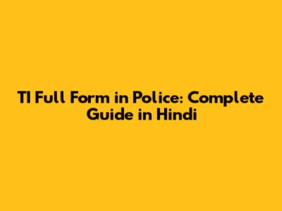 TI Full Form In Police: Complete Guide In Hindi