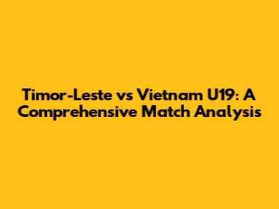 Timor-Leste Vs Vietnam U19: A Comprehensive Match Analysis
