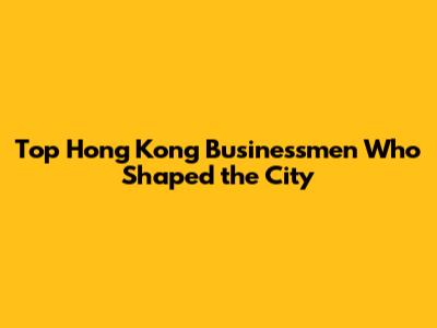 Top Hong Kong Businessmen Who Shaped The City