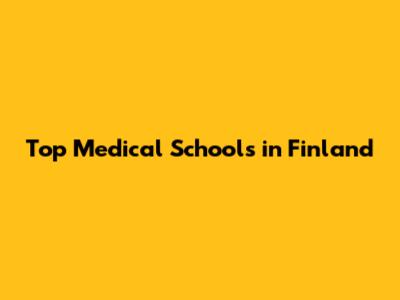 Top Medical Schools In Finland