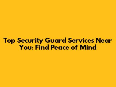 Top Security Guard Services Near You: Find Peace Of Mind