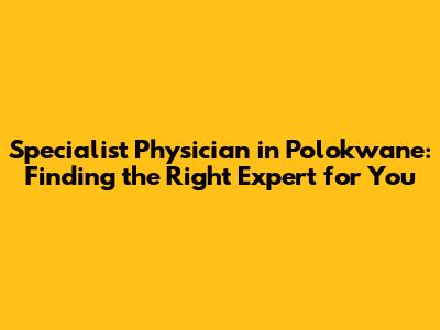 Top Specialist Physicians In Polokwane: Find Your Expert