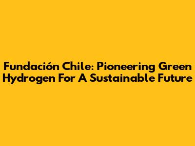 Fundación Chile: Pioneering Green Hydrogen For A Sustainable Future
