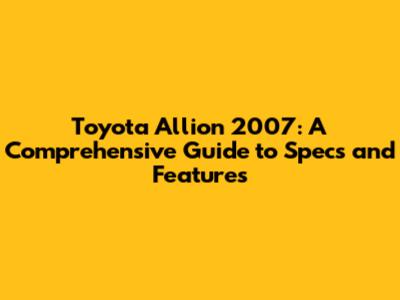 Toyota Allion 2007: Specs, Features, And More!