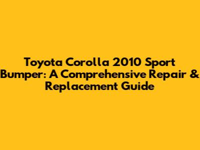 Toyota Corolla 2010 Sport Bumper: Repair & Replacement Guide