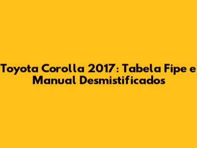 Hey guys, let's dive deep into the world of the Toyota Corolla 2017, a car that's a staple on roads everywhere! Whether you're looking to buy, sell, or just understand your ride better, knowing about its Tabela Fipe value and having access to the official manual are super important. This article is all about breaking down what the Tabela Fipe means for your 2017 Corolla, how to find it, and why that owner's manual is your best buddy for keeping your car in top shape. We'll cover everything from understanding the FIPE table's role in pricing negotiations to the nitty-gritty of your car's features, maintenance schedules, and troubleshooting tips. So, grab a coffee, and let's get you informed about your awesome Corolla!