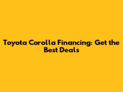 Toyota Corolla Financing: Get The Best Deals