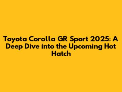 Toyota Corolla GR Sport 2025: Specs, Features & More!