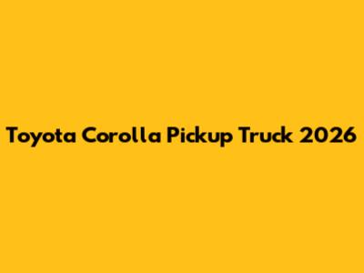 Toyota Corolla Pickup Truck 2026: What To Expect?